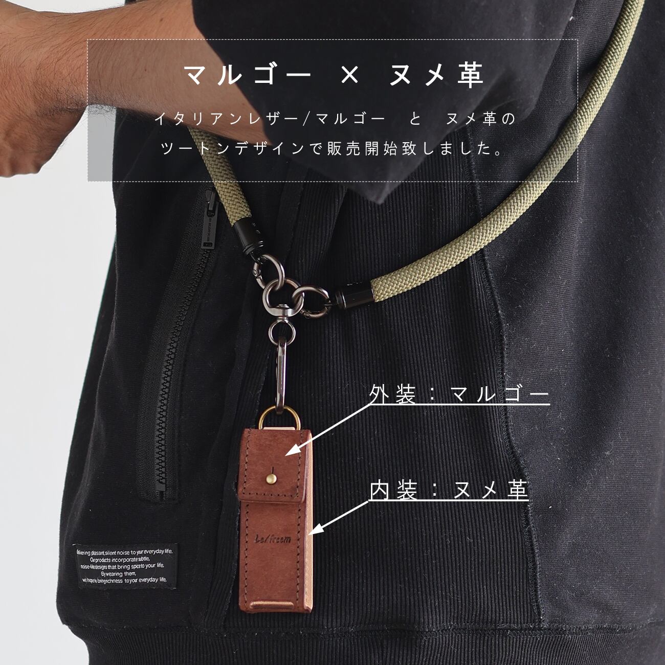 背面にはDカンが付いていますので、鞄やショルダーストラップ、スマホストラップにぶら下げたり、スマートキーのキーホルダーとしてもご使用可能です。