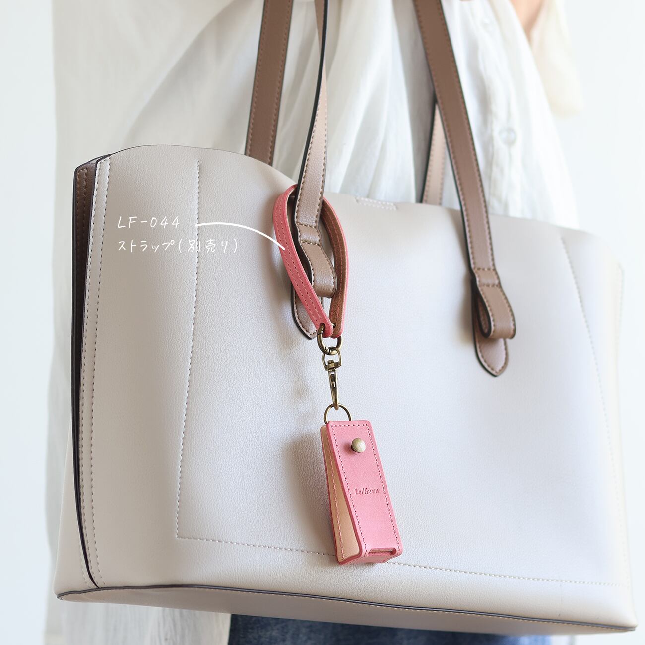 背面にはDカンが付いていますので、鞄やショルダーストラップ、スマホストラップにぶら下げたり、スマートキーのキーホルダーとしてもご使用可能です。