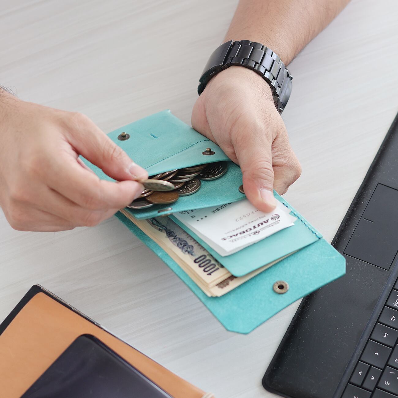 小銭入れは省スペースに抑え、小銭が20枚前後収納可能です。