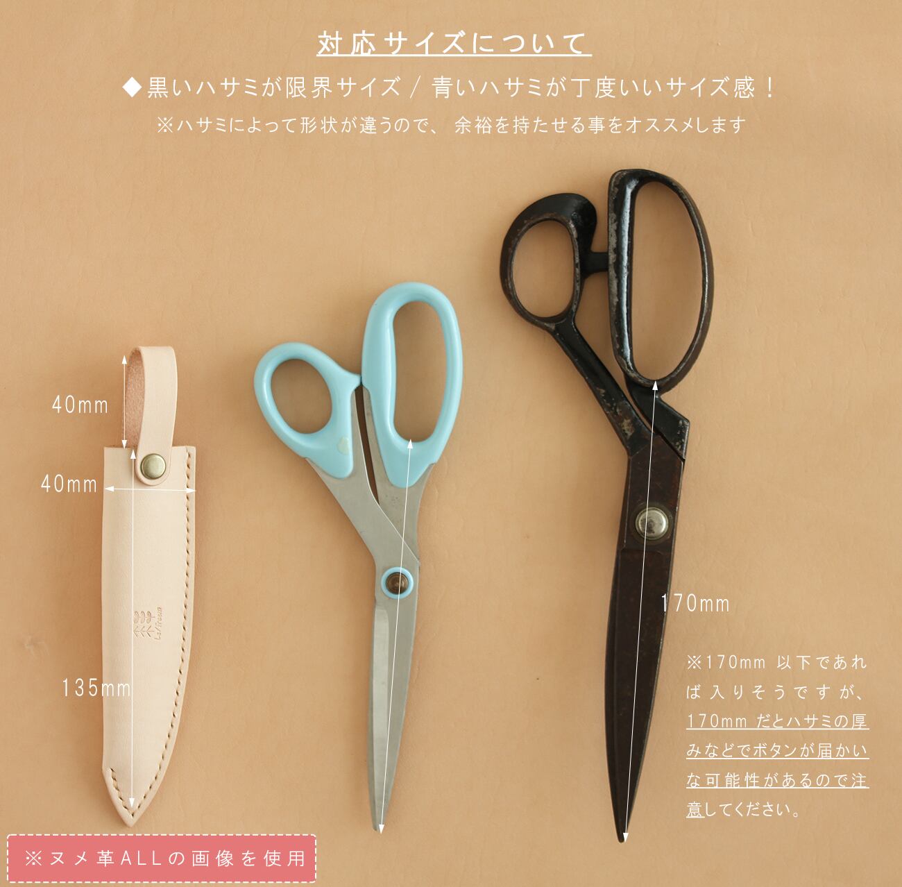 170mmが限界のため、170mmの場合は、ハサミの厚みによって
