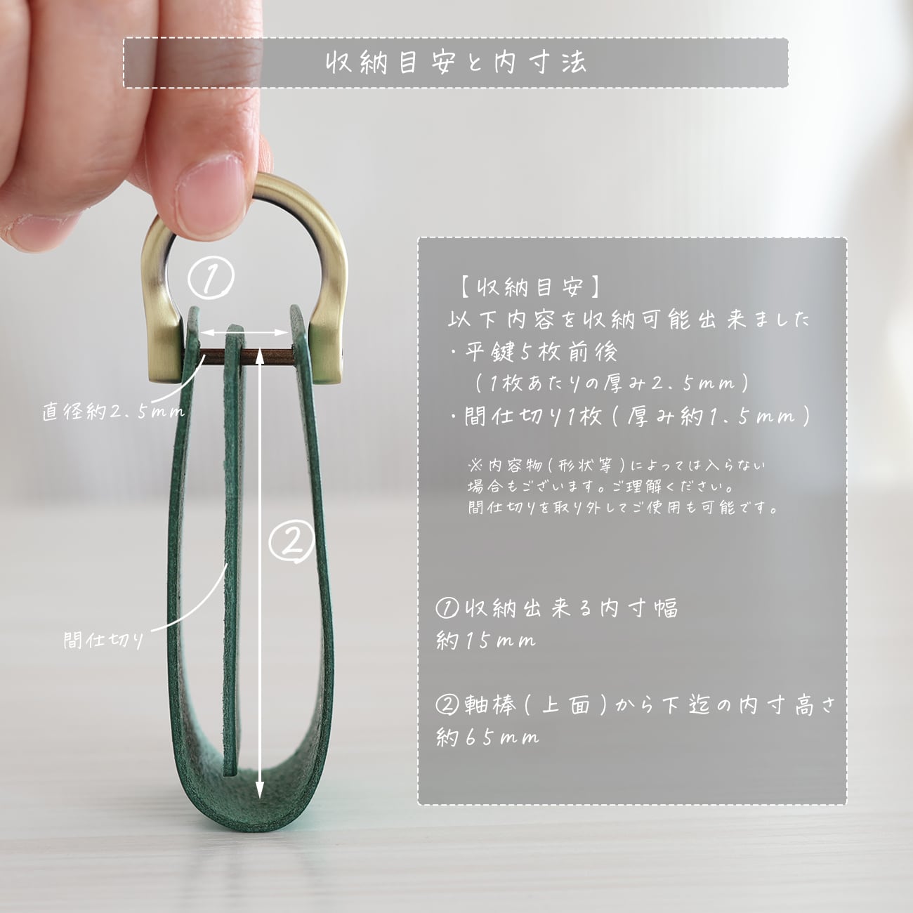 同じ革の間仕切り付きなのでカギ同士が干渉した干渉音防止になります。