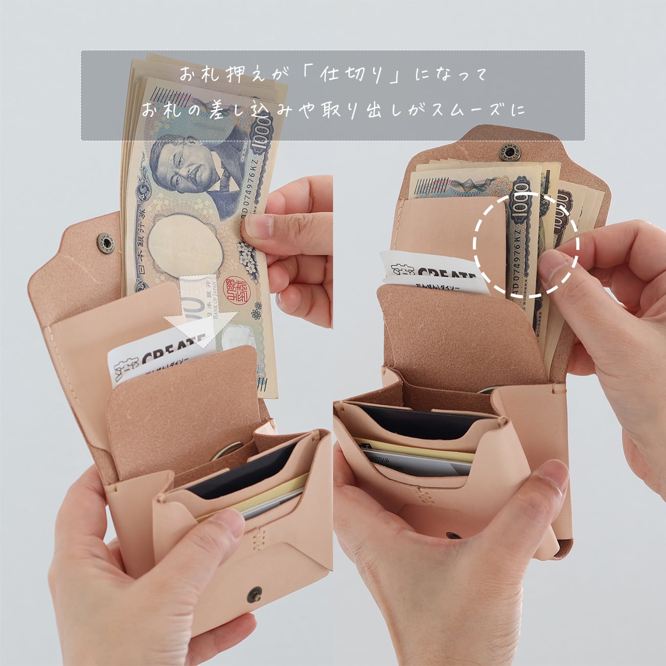 お札が折れない 高機能コンパクト財布 LF-051 ヌメ革ALL ミニ財布 レザーウォレット 小さい財布 軽い財布
