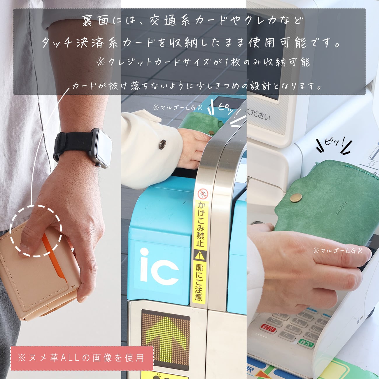 裏面はタッチ決済できるようにカード収納付き。