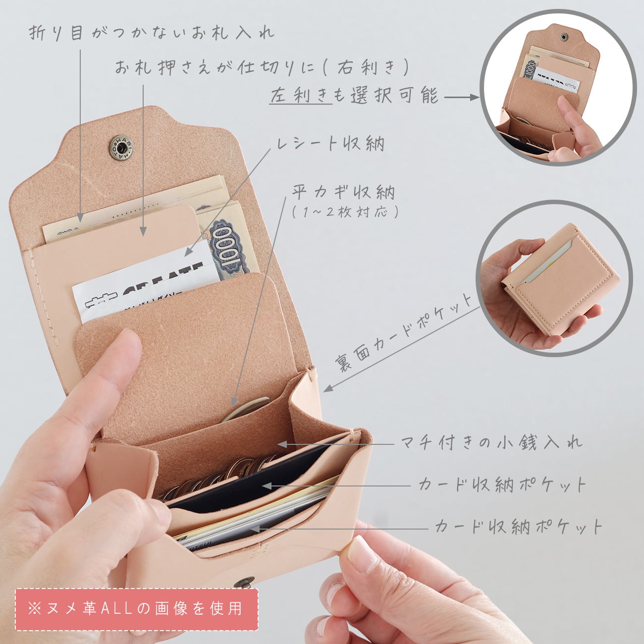 ■ヌメ革(キナリ色/肌色)について