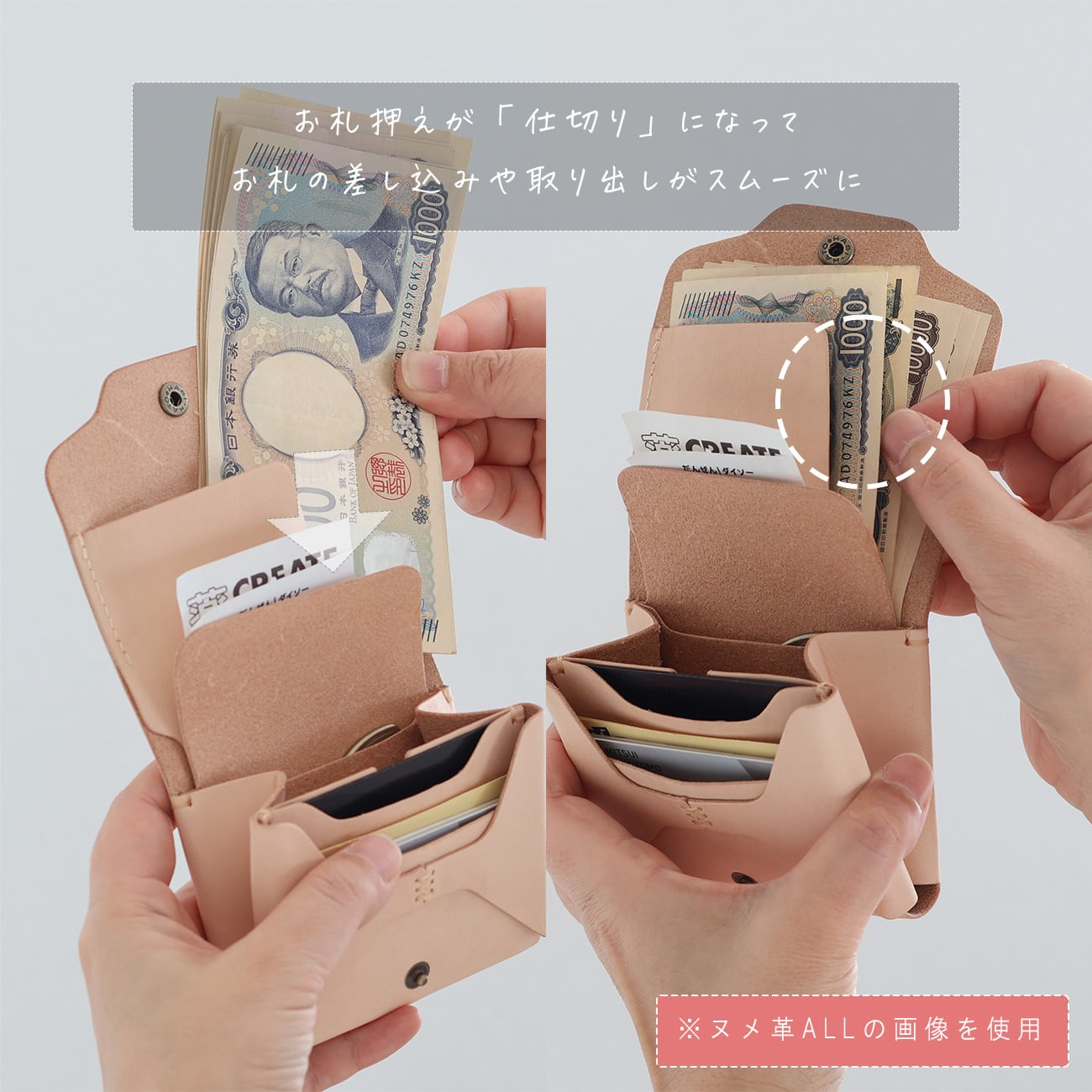 お札が折れない 高機能コンパクト財布 LF-051 シビラ×ヌメ革ツートン 財布 レザーウォレット 小さい財布 軽い財布