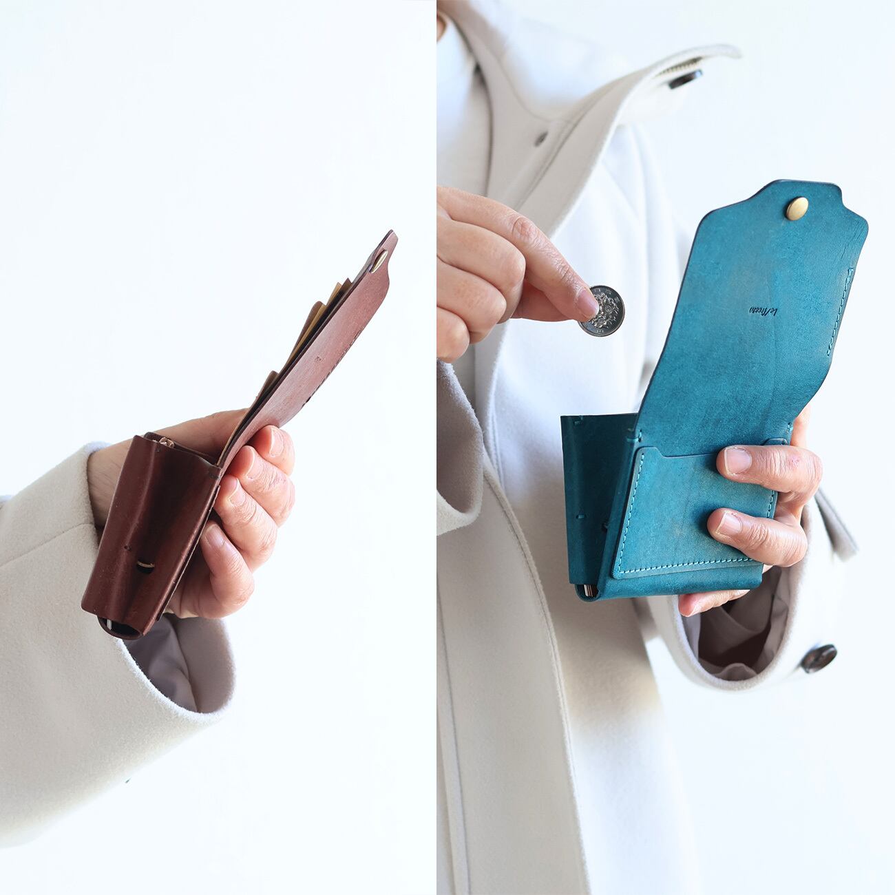 小銭入れはフラップのみにする事で、ファスナーやボタンを開ける動作を無くしスムーズに出し入れが可能です。財布を逆さまにしても、振っても小銭が落ちない設計になっています。