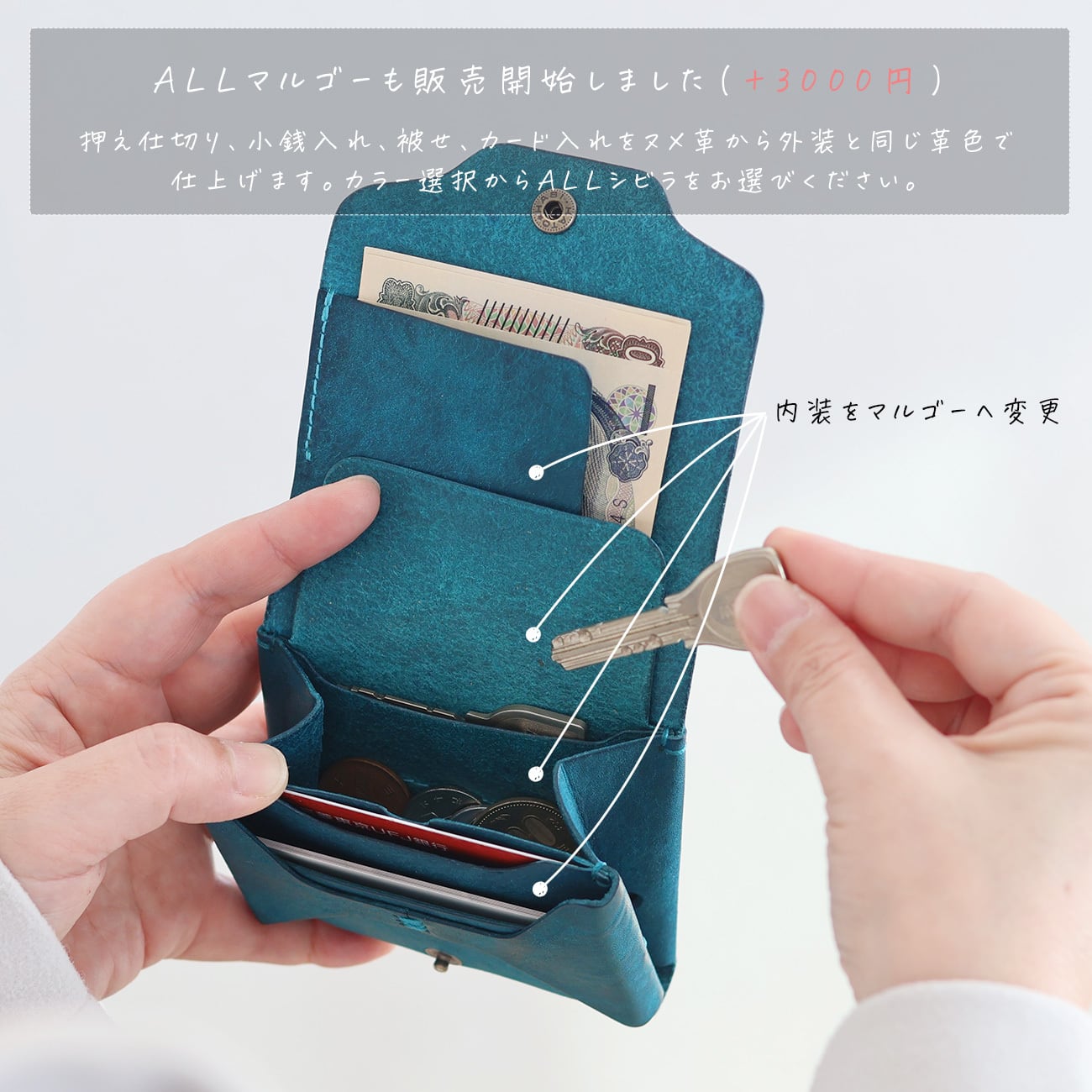 また、内部には平鍵を横向きに収納できるミニポケットが付きました。