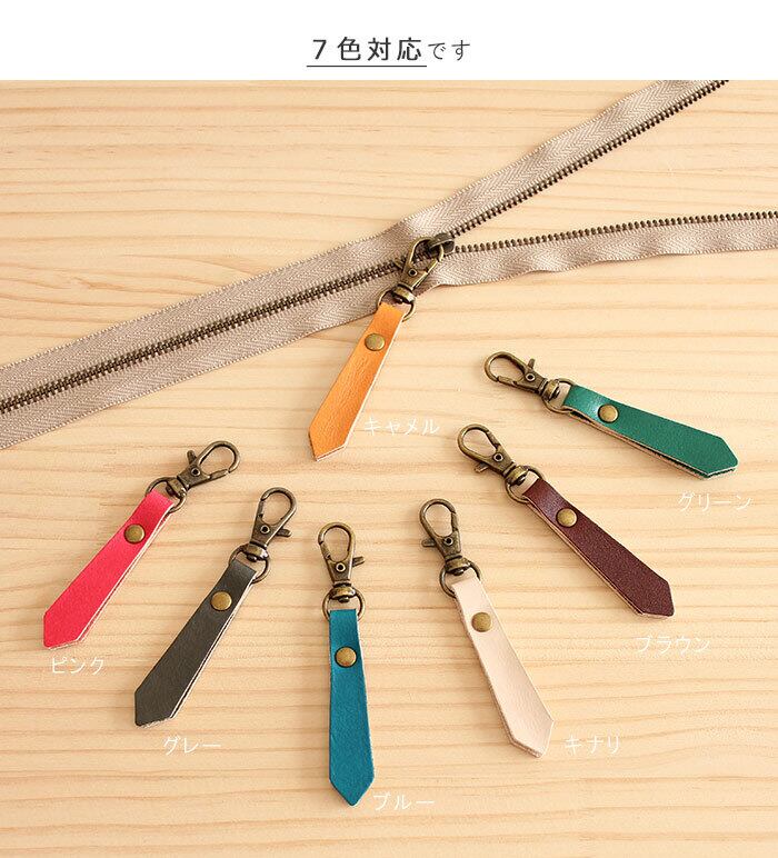 つまみ引き手(大/菱形) ナスカンタイプ T-91 ファスナー取っ手 7色 牛革 レザー かわいい ネクタイみたい 革小物