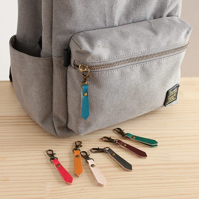 ファスナースライダーに付いているツマミ(引き手)をレザーで作りました。