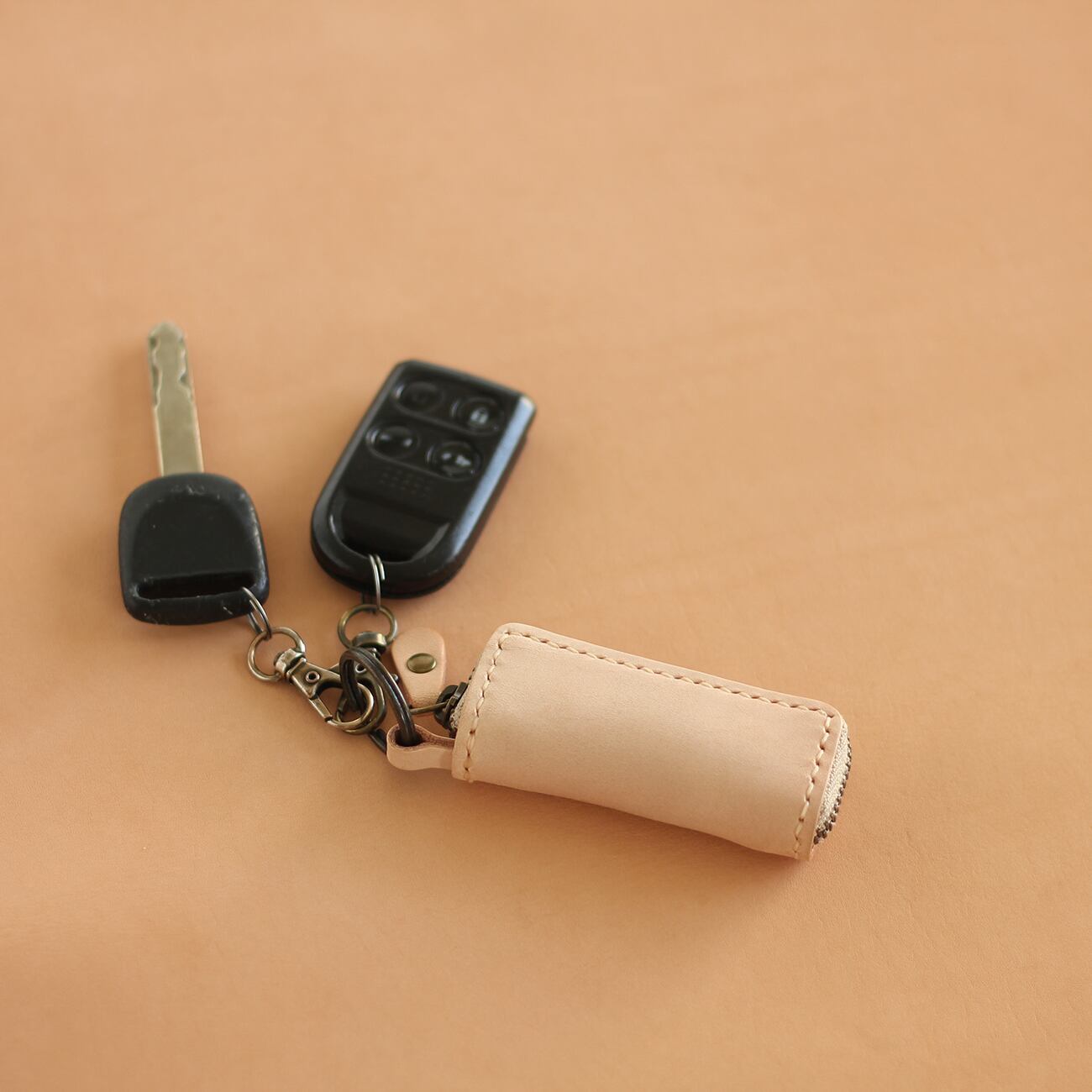 ミニラウンドファスナー小銭入れキーホルダー LF-026 ヌメ革ALL レザー 牛革 本革 皮ヌメ革 超コンパクト財布