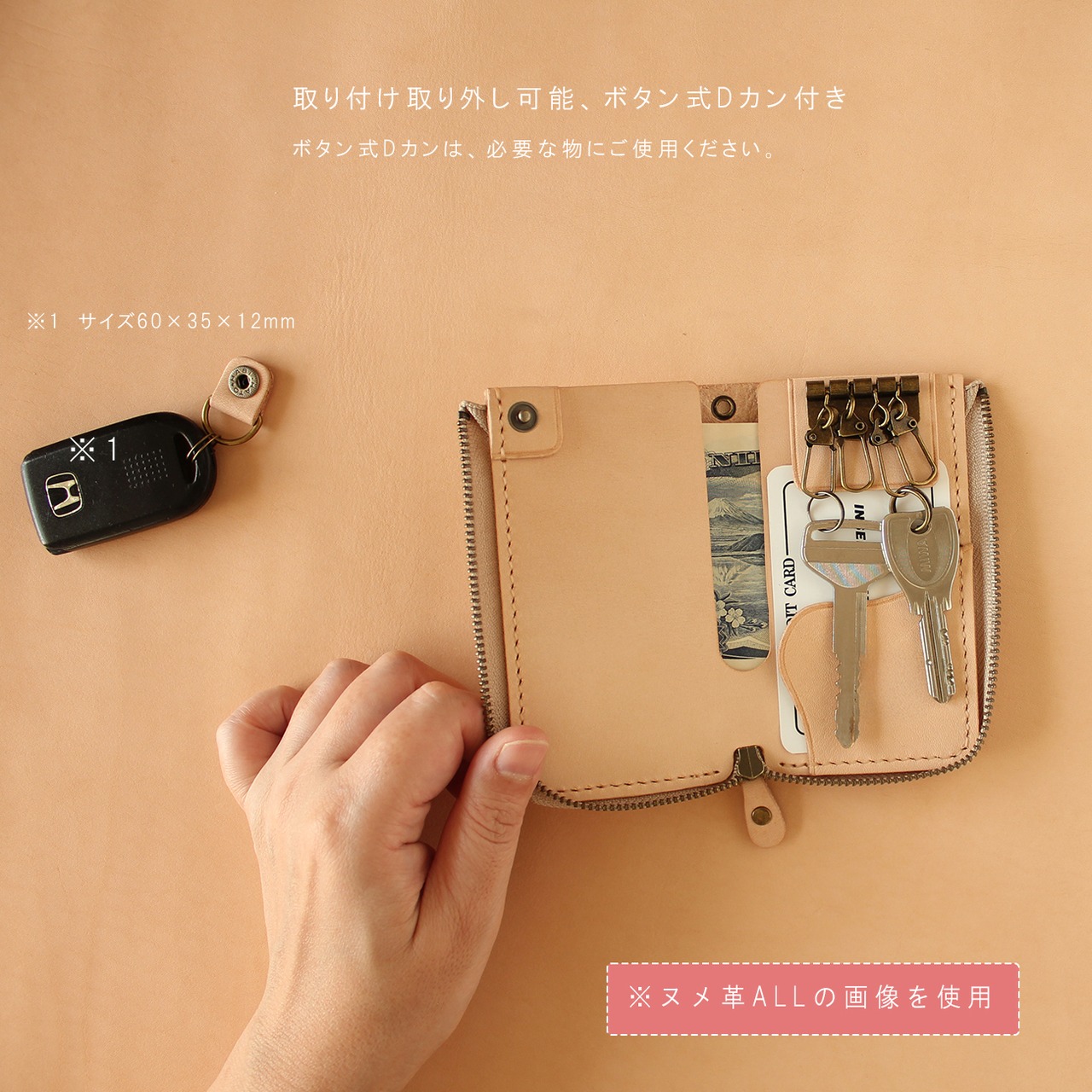 免許証・車のスマートキー・お札・家の鍵・クレジットカードがまとめて入るマルチなキーケース。